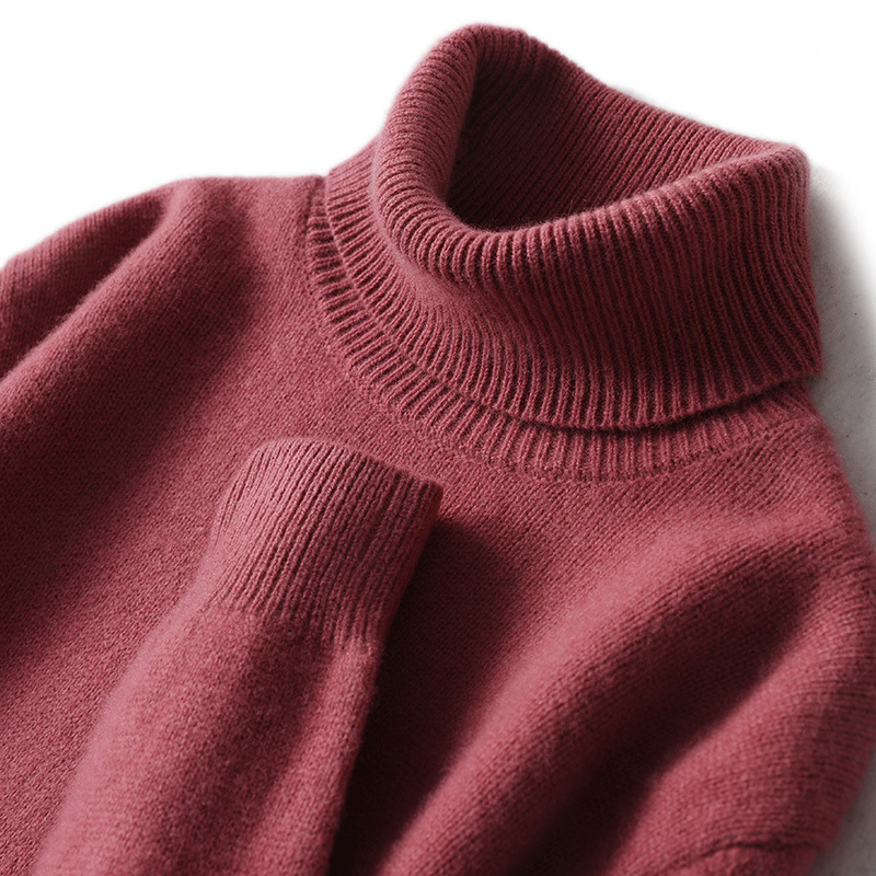 High collar, thickened, loose pullover, solid color, versatile cashmere sweater, knitted bottoming shirt
